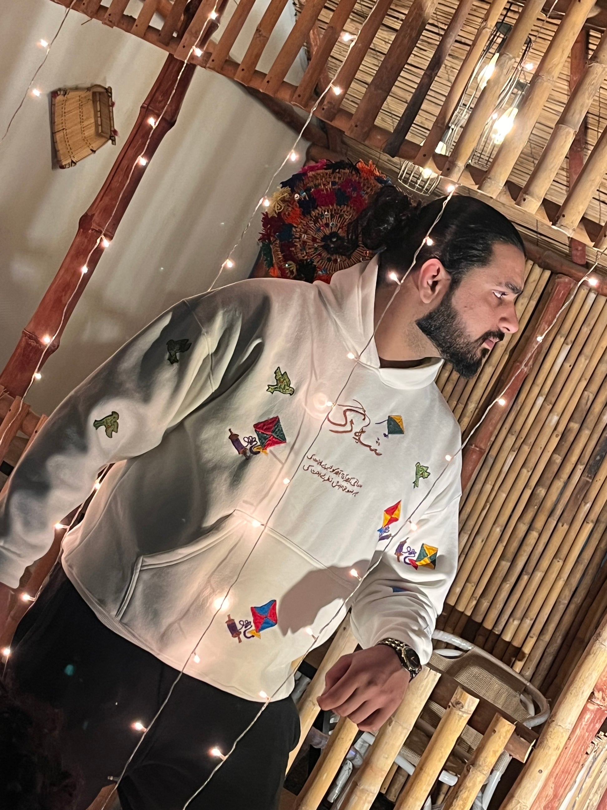 Celebrate the arrival of Spring with a piece that’s as vibrant as a rooftop kite battle. This isn't just a hoodie; it’s a canvas. Featuring intricate, hand-laid embroidery, each stitch tells the story of Basant—the flutter of kites, the rhythm of the drums, and the bold yellows of the mustard fields.